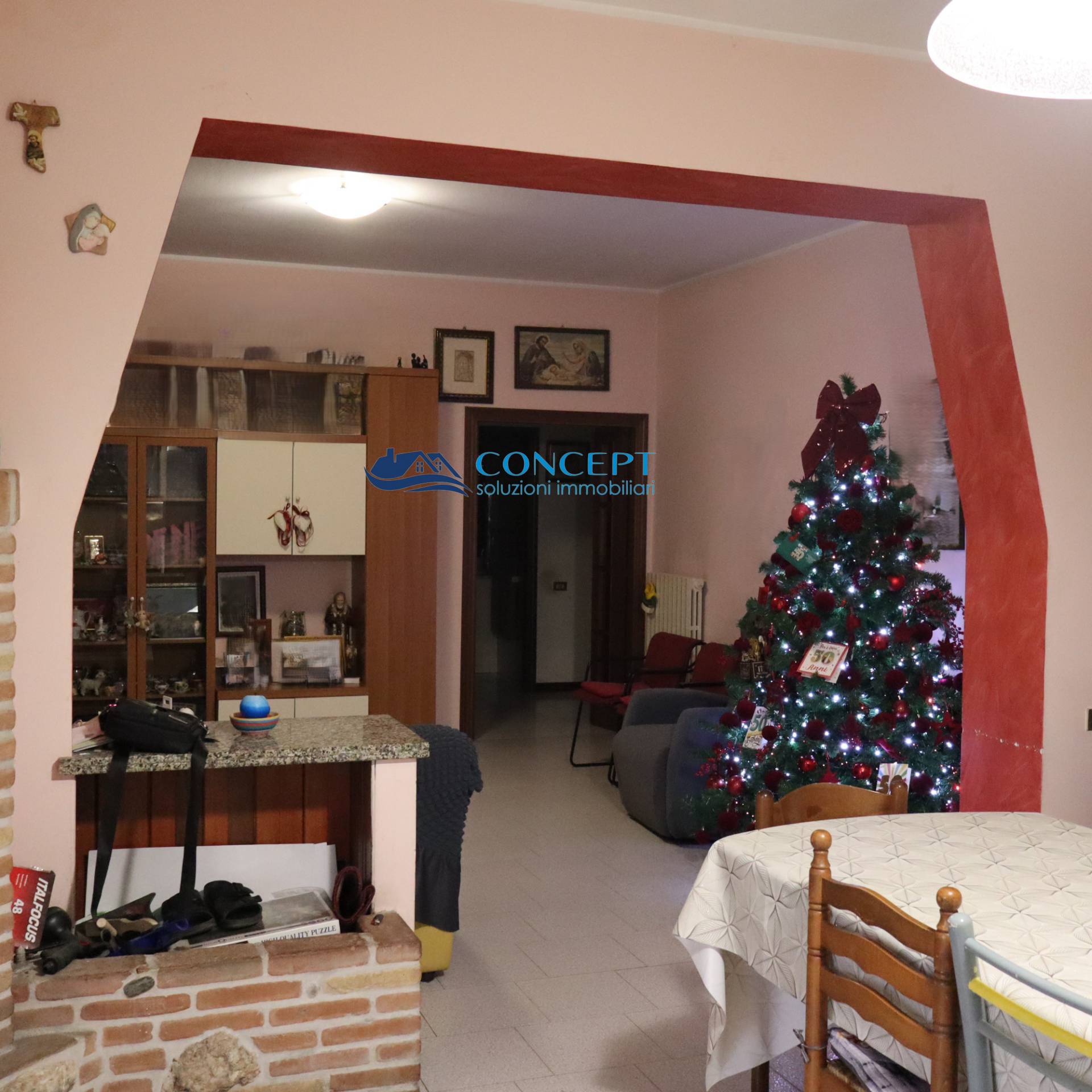 Al primo piano ci sono: ampio soggiorno con cucina abitabile e ampio ripostiglio, disimpegno, due camere matrimoniali, una camera doppi e due bagni finestrati.