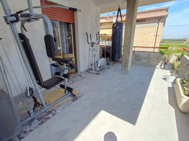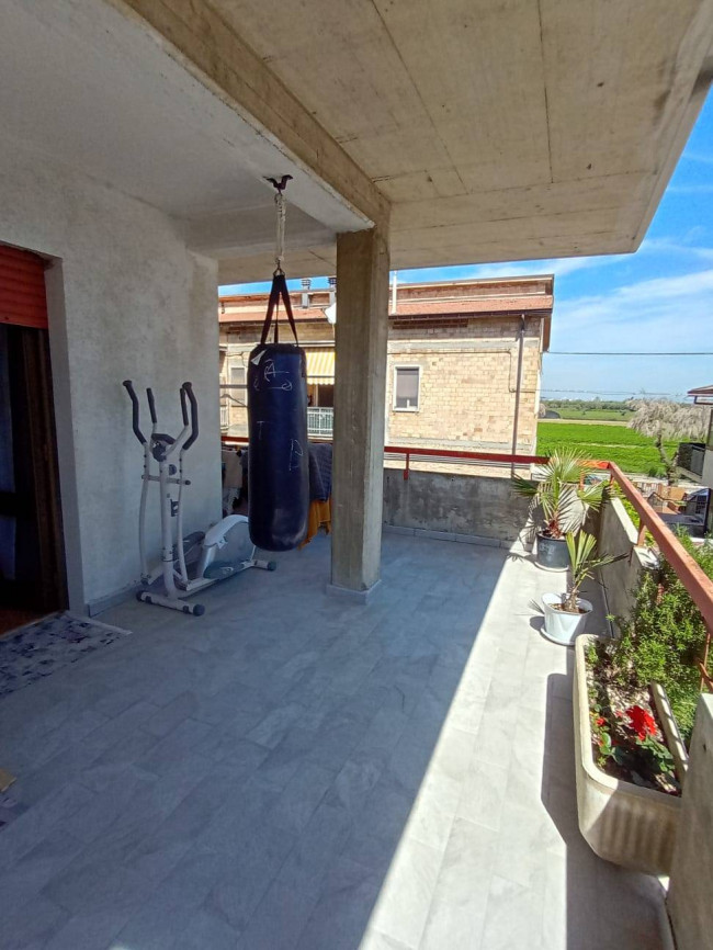 Dal soggiorno si accede ad un piccolo disimpegno che porta alla camera da letto con vasto terrazzo abitabile esposto a est.